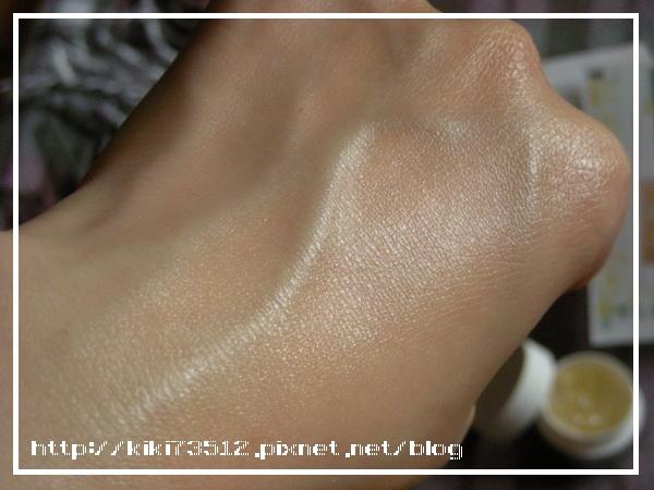 稍微抹開就可以看到金箔已經開始慢慢被肌膚吸收