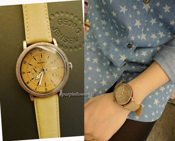 purple☆ 韓 DB 奶茶色皮革錶 $830